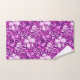 Serviette sertie dans une vintage impression florale William Morris de lys stylisés et d'Irises, numériquement rehaussée et colorée, dans les tons mauve améthyste, prune, lilas et blanc sur un profond améthyste violet arrière - plan
