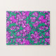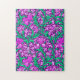 Puzzle in a William Morris, Art Nouveau, textile print of irises and leaves, digitally enhanced and colored, in soft orchid and turquoise, on a deep amethyst purple background