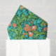 Tissue paper in a William Morris, Art Nouveau, textile print of irises and leaves, digitally enhanced and coloured, in orange, lime green, and soft aqua, on a deep turquoise background