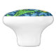 Ceramic knob in a William Morris, Art Nouveau, textile print of irises and leaves, digitally enhanced and coloured, in golden yellow, green, and soft blue, on a deep cobalt blue background