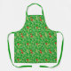 Apron in a William Morris Art Nouveau textile pattern of lychee tree branches and leaves, in shades of lime and deep green, accented with red lychee fruits and yellow blossoms, on a light green background