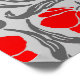 Print in a vintage William Morris textile pattern of stylized pimpernel flowers and leaves - flowers in a gradient of dark to bright red, with graphite grey / grey leaves, on a light silver grey background