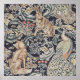 The Forest tapestry (detail ) by William Morris, 1887. The tapestry includes a fox, a raven, a lion, and a peacock.