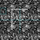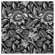 Fabric in a vintage William Morris, Art Nouveau, floral print of stylized sunflowers, digitally enhanced and colored, in black and white, accented with silver gray / grey