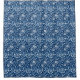 Shower curtain in a vintage William Morris, Art Nouveau, floral print of stylized sunflowers, digitally enhanced and colored, in navy / indigo blue and white, accented with light denim blue
