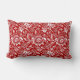 Lumbar pillow in a vintage William Morris, Art Nouveau, floral print of stylized sunflowers, digitally enhanced and coloured, in deep Chinese red and white, accented with light coral