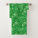 Towel set in a vintage William Morris, Art Nouveau, floral print of stylized sunflowers, digitally enhanced and coloured, in deep emerald green and light green