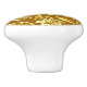 Ceramic knob in a vintage William Morris, Art Nouveau, floral pattern of stylized sunflowers, in deep mustard yellow / gold and yellow