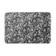 Bath mat in a vintage William Morris damask pattern of thistle flowers and leaves, in white, on a black background, digitally enhanced and coloured