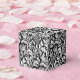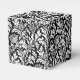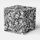Favour box in a vintage William Morris damask pattern of thistle flowers and leaves, in white, on a black background, digitally enhanced and coloured