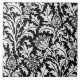 Ceramic tile in a vintage William Morris damask pattern of thistle flowers and leaves, in white, on a black background, digitally enhanced and coloured