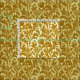 Fabric in a vintage William Morris damask pattern of thistle flowers and leaves, in deep mustard gold, on a light chamois yellow background, digitally enhanced and coloured