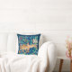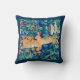 Throw pillow in a William Morris illustration of two hares running through a wild forest setting - digitally enhanced and coloured