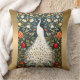 William Morris White Peacock Art Deco Gold Silver Throw Pillow