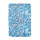 Bath mat in a vintage William Morris pattern of stylized willow branches, in shades of cobalt and cerulean blue with dark indigo, on a white background