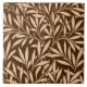 Ceramic tile in a William Morris, Art Nouveau textile pattern of stylized willow branches and leaves in shades of tan / beige, accented with cream, on a dark chocolate brown background