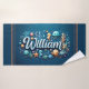 Luxurious bath towel with William's name surrounded by adorable sea life including jellyfish, starfish, and seahorses. Transform bath time into an oceanic adventure. Super soft and highly absorbent.