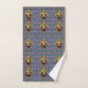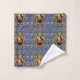 The Bard - L'oeuvre originale de ZoeSPEAK sur cet ensemble de serviettes de bain est un motif fait avec un portrait de l'auteur William Shakespeare. Le portrait est dans un cadre orné d'or ovale avec des rubans et une couronne sur le dessus. Le papier peint arrière - plan bleu est orné de châteaux, de couronnes de rois et de fleurs jaunes et rouges, rappelant l'romantisme, la tragédie et la comédie de ses pièces de théâtre et de poésie.