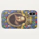The Bard - The original artwork by ZoeSPEAK on this iPhone X Case is a portrait of the author William Shakespeare. The portrait is in an ornate oval gold frame with ribbons and a crown on top. The blue background wallpaper is decorated with castles, kings' crowns and yellow and red flowers, bringing to mind the romance, tragedy and comedy of his plays and poetry.