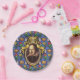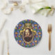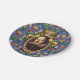 The Bard - The original design on these Paper Plates is a portrait of the author William Shakespeare. The portrait is in an ornate oval gold frame with ribbons and a crown on top. The blue background wallpaper is decorated with castles, kings' crowns and yellow and red flowers, bringing to mind the romance, tragedy and comedy of his plays and poetry.