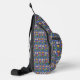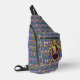 L'oeuvre originale de ZoeSPEAK sur ce Sling Bag présente un portrait de l'auteur William Shakespeare. Le portrait est dans un cadre en or ovale avec des rubans et une couronne sur le dessus. Le papier peint arrière - plan bleu est orné de châteaux, de couronnes de rois et de fleurs jaunes et rouges, rappelant l'romantisme, la tragédie et la comédie de ses pièces de théâtre et de poésie.