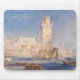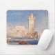 Rhodes. Joseph Mallord William Turner (1775 – 1851). A lovely seascape in pink and blue tones. In the foreground are boats and ships in the bay near the city walls. in the middle ground there is a high tower. In the background there is a city with stone houses. Reproduction of famous works of art images in the public domain.