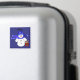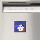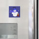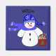 Customize this cute snowman magnet with a child or adults name. These could go on the table as place holders and then be taken home with each one. A cute snowman in a blue hat and scarf holding a red bucket full of holiday treats.