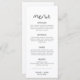 Ce menu comporte une police de caractères manuscrite moderne et un design minimaliste simple. La combinaison simple de couleurs noir et blanc en fait un complément parfait à tout événement. Utilisez ce menu pour votre réception de mariage, douche nuptiale, fête de retraite, etc. Modifiez le libellé *le plus* pour répondre à vos besoins. Associez-vous à tout ce qui provient de la collection WILLOW pour un look cohérent : https://bit.ly/3e8um3k