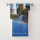 It was advertised as NAVY blue and the color sent was greenish blue. I am disappointed in this product. Quality and printing are great as are all my other orders. As you can see in picture the tea towel on right is perfect, hand towel not so much! Print was awesome and just as ordered