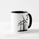 Catch The Wind! - windblown black lettering with a cluster of modern wind turbines. Choice of ceramic mug or travel mug styles.