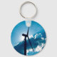 Wind turbine in the back light of the sun with blue sky and clouds.