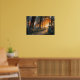 Winding path through woods at twilight poster