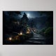Winding stone path to stone outcropping temples poster