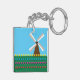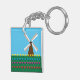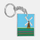 A windmill amongst yellow blue red and pink tulip flowers. This design looks really effective on these Keychain
