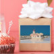 Photo sticker with the salt museum with a traditional windmill with a red roof and reflection in the salt pans at the salina of Mozia at the west coast of Sicily between Trapani and Marsala.