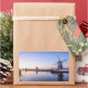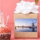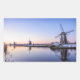 Rectangular photo sticker of a sunrise over the windmills of Kinderdijk in the Netherlands in winter with some snow and ice on the water.