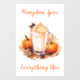This window cling is shown with a pumpkin latte art print for autumn, text reads Pumpkin Spice Everything Nice.