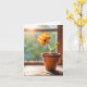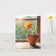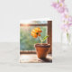 A single orange daisy in a clay flower pot on a windowsill in sunlight blank note card.