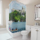 English Scenes series: A beautiful sunny-day view of Windsor Castle, nestling amongst the trees and clouds and domineering the River Thames. A rowing boat in the foreground has four people in it "messing about on the water", a traditional past-time on the Thames. What a great picture for a shower curtain! Change text, blank out or leave as is.