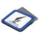 Windsurfer on board black, blue windsurfing laptop sleeve that displays a minimalist pictogram icon of a black silhouette windsurfer and your text on white background with blue border. Personalize it and change text with monogram, name or your message.