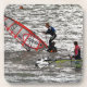 An art design of windsurfers in the sea in Aberdyfi Wales UK.