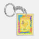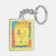 Have fun with this key chain featuring colourful and whimsy yellow chicken hen art. “Wine a Little” features a chick wearing green ballerina type flats and purple necklace. She is holding glass of wine along with the bottle of wine. She is on a yellow background surrounded by the words “Chick Power” at the top and “Wine a Little” at the bottom”. The entire design is framed by a whimsical serpentine border created in yellow, green, fuchsia, and other colours. Fully customizable.