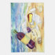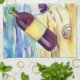Part of the Unique Wine Art Collection, this kitchen towel features a watercolor scene of red wine and cheese set at the beach.