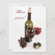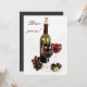 Wine and cheese dinner celebration invitation featuring an elegant yet casual setting with wine bottle, wine glass, figs, and grapes.