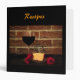 This binder features a simple image of a glass of wine, a plate of cheese and three red flowers against a rustic red brick wall. A smaller image is repeated on the back. The text on the front and spine can be customized or removed.