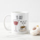 Funny Wine and Coffee Drinker Coffee Two-Tone Coffee Mug. Trendy, cute, funny coffee mug saying "She Loves Me More ! No, She Loves Me More!" in modern typography on the two-toned coffee mug. Edit all colours to make this funny coffee lover mug fit your personal style!