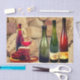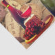 Gift tissue paper with image of wine corks and bottles of wine with grapes and cheese.