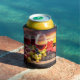 For wine lovers! A can cooler or cozy featuring a playful design of wine glasses, grapes, and vineyard grape leaves. Vibrant colours and practical too! It makes a delightful gift for any wine enthusiast.