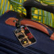 Easily customize the reverse side of this luggage tag with your personal information. This colourful baggage tag features a simple still life of one upright bottle of wine next to three more bottles in a wooden wine rack. A rustic brick wall background completes the composition which takes on an abstract pattern. Make your suitcases stand out on an airport carousel with unique tag designs!
