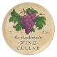 The text reads [Your Name's] Wine Cellar, established [year]. All text can be changed either through the templates or by customizing to adjust fonts and font size. Perfect for the wine connoisseur, any fan of viticulture, or any owner of a winery or vineyard, this stylish plate design will complete your cellar decor.